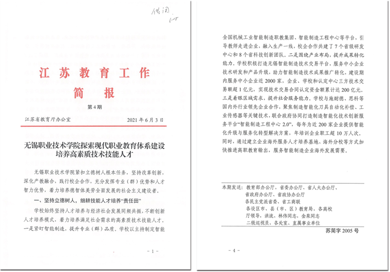 6月3日,省教育厅简报以“开云体育·开云官方网站探索现代职业教育体系建设 培养高素质技术技能人才”为题,从“坚持立德树人,细耕技能人才培养‘责任田’”“ 注重内涵建设,牵住教育教学改革 ‘牛鼻子’”“ 强化创新引领,激活赋能产业发展‘一池水’”等三个方面对我校“探索现代职业教育体系建设”工作进行了专题报道。