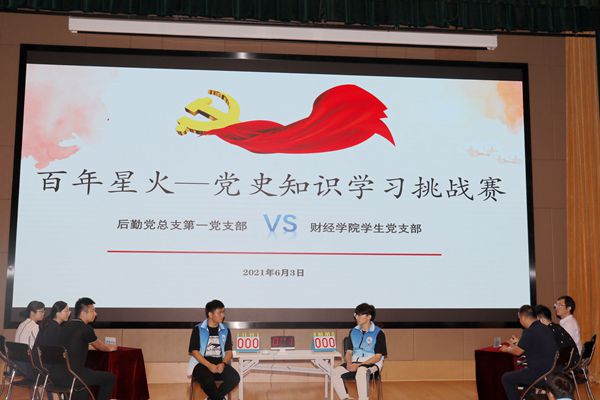 为认真落实新时代党的建设总要求,达到“互建促自建”的目的,后勤党总支第一支部和财经学院党总支学生支部举行共建签约仪式。签约仪式后,“百年星火”党史知识学习挑战赛开赛,两个党支部共18名党员代表作为参赛选手展开激烈对决。本次知识竞赛题库涵盖中国共产党建党百年来的革命史、新中国史、改革开放史、社会主义发展史等内容,促使党员更好地学史明理、学史增信、学史崇德、学史力行。