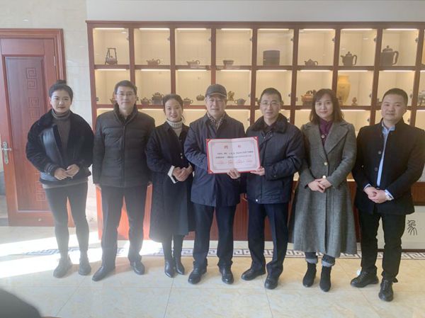 1月15日上午,我校龚方红校长带队,走访了沈建强筋纹器紫砂艺术中心,为研究员级高级工艺美术大师沈建强颁发江苏省产业教授证书。