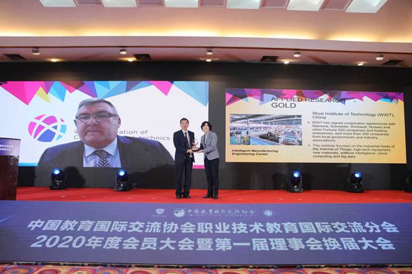 WFCP主席、澳大利亚技术与继续教育学院校长委员会首席执行官克雷格·罗伯森(Craig Robertson)在线主持颁奖典礼并宣布获奖名单,中国职业院校共获得29个奖项中的14个奖项,包括 5 项金奖、4 项银奖和 5 项铜奖。我校获得了卓越奖“应用研究与创新”类金奖,这是我校继连续三年蝉联2017、2018、2019全国高职院校国际影响力50强,连续三年囊获2017、2018、2019江苏省外国文教专家管理工作先进单位,先后两次获得江苏省来华留学生教育先进集体后,再次获得重要的世界职业教育荣誉,向世界彰显了学校的职业教育国际的综合实力。