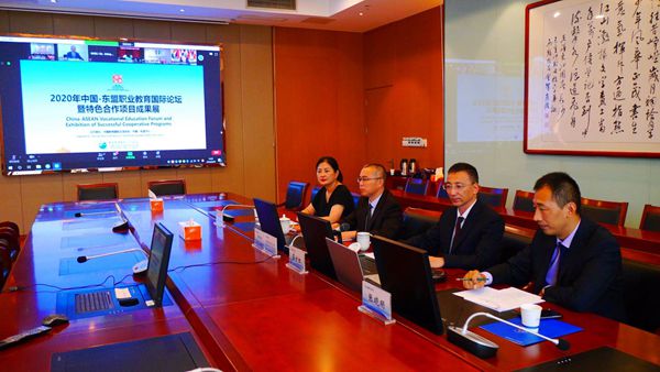 8月26日至27日,由中国教育国际交流协会与中国—东盟中心共同主办的“2020年中国—东盟职业教育国际论坛暨特色合作项目成果展”在线成功举办。来自中国与东盟各国教育行政部门、职业院校、行业企业及有关国际组织的300余名代表参会。我校龚方红校长、强伟纲副校长受邀参加会议,国际教育学院相关人员一同参会。