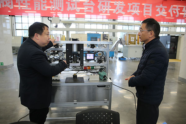 交付仪式由机械学院王骏院长主持,龚方红校长、委托企业项目负责人以及项目组成员参加了交付仪式。项目组负责人马俊峰老师向委托企业项目负责人详细介绍了设备研发过程、性能指标、操作要点及维护保养方面的情况,并现场进行了演示。经检验,两台设备实现了预期功能、各项性能指标符合技术要求,双方在项目结题验收单上进行了签字确认。
