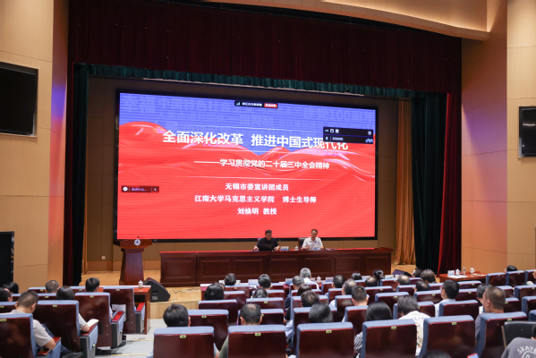 9月18日,学校举办党的二十届三中全会精神宣讲报告会暨党委理论学习中心组(扩大)学习会,市委宣讲团成员、江南大学二级教授、博士生导师刘焕明受邀作宣讲报告。校党委书记龚方红主持报告会并讲话。