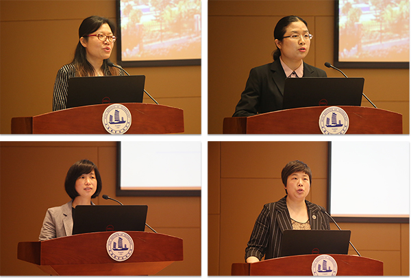 随后,龚方红校长以《聚焦内涵建设 传承质量文化 内部质量保证体系诊断与改进探索与实践》为题,从“建设思路”“两链打造”“螺旋运行”“平台建设”“引擎驱动”“成效思考”等六个方面作了学校内部质量保证体系诊改工作汇报。吴慧媛、苗盈、芦敏、徐悦、奚茂龙分别从专业、课程、教师、学生等层面进行了汇报。
