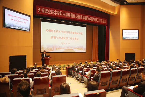 23日上午,学校内部质量保证体系诊改复核工作汇报会在综合楼一楼报告厅举行。我校党委书记朱爱胜、江苏省高职诊改专委会主任委员丁晓昌教授先后致辞。邵进处长在讲话中指出,通过实施诊改,江苏全省高职教育系统强化了质量核心的发展理念,逐步形成了“纵向5个系统”,“横向5个层面”,“8字形质量改进螺旋”基本运行单元,“双引擎”“一平台”的内部质量保证体系。他还就江苏高职教育如何更好贯彻诊改理念,实现高质量发展提出了三点意见。一是要树立并推广现代质量理念,强化全员质量意识,二是要培育现代质量文化,完善人才培养质量标准,三是要发挥好江苏省专委会有利的平台和专家作用,帮助高职院校做好诊改工作。