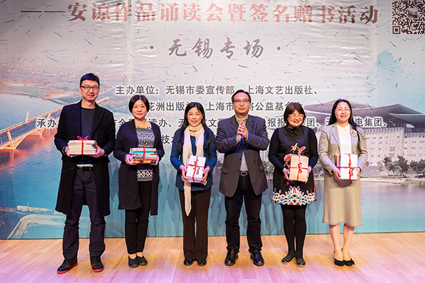 4月27日,作家安谅作品诵读会暨签名赠书活动在我校综合楼报告厅举行。活动由市委宣传部、上海文艺出版社等单位主办,无锡市全民阅读办、我校等单位承办。市人大常委会副主任、党组副书记朱民阳,市委宣传部常务副部长陆惠玲、我校副校长杨雪琴等参加了诵读会。