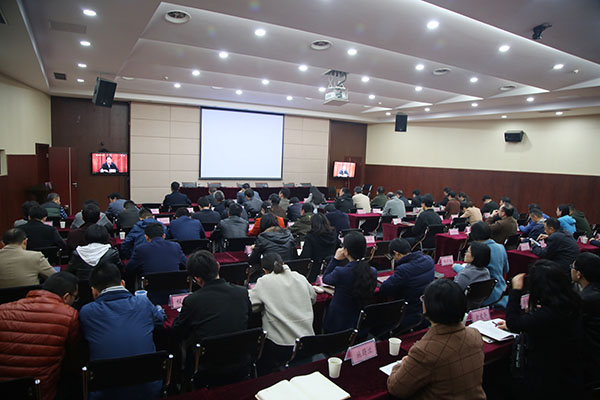 3月28日下午,省教育厅组织召开2019年全省教育系统全面从严治党工作视频会,校领导和全体中层干部在国教二楼报告厅分会场参加了视频会议。