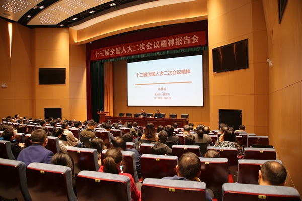 3月26日下午,学校在综合楼一楼报告厅举办十三届全国人大二次会议精神报告会,全国人大代表、无锡市人民医院副院长陈静瑜应邀作报告,学校党委和党总支两级理论学习中心组成员、机关全体科级以上干部、马克思主义学院全体教师、全体辅导员、学生代表等近200人到场聆听。
