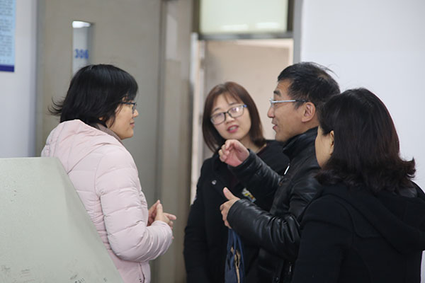 朱爱胜书记与黄翀鹏老师(左二)在课间交流
