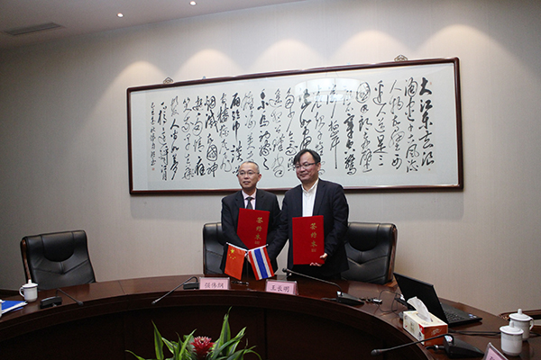 强伟纲副校长对访问团的来访表示热烈欢迎,并向来宾介绍了我校的办学特色及近年来教育国际化方面取得的成果,希望通过访问交流进一步深化与泰国高校的国际教育合作。王长明主席对我校的热情接待表示感谢,并介绍了泰国格乐大学的基本情况与特色项目,期待与我校在学生交流、学分互认、教师培训及学历提升、跨境科研合作等方面开展合作。强伟纲副校长与王长明主席签定了合作备忘录。