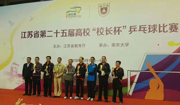 10月13日至14日,江苏省第25届高校“校长杯”乒乓球赛在南京举行,校领导朱爱胜、龚方红、谈向群代表学校参赛并获高职高专组团体第六名的好成绩。