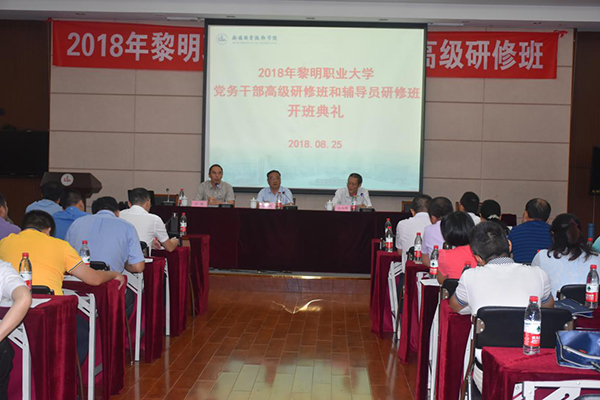 8月25日上午,黎明职业大学党务干部高级研修班和学工干部职业能力提升培训班在我校国际交流中心二楼报告厅开班,来自黎明职业大学的党务和学工干部共71名学员参加了开班典礼。