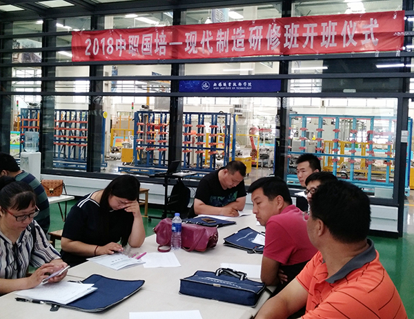 7月16日,现代制造-紧缺领域教师技术技能传承创新研修班在智能制造工程中心开班,来自全省中等职业学校(含五年制高等职业技术学校)装备制造类专业高素质技能名师和骨干教师将参加为期7天的培训。控制技术学院院长黄麟教授、副院长赵翱东、实训中心主任陆荣等出席了开班仪式。
