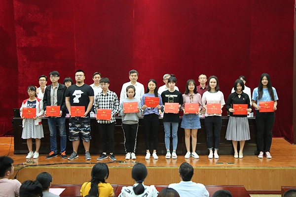 会议在庄严的国歌声中开始。大会首先表彰了获得学校2017年度“优秀共青团员”称号的居佳晨等300名团员青年、获得“优秀团干部”称号的李强等70名团干部、获得“五四红旗团支部”称号的机械电子11641班等30个团支部和获得“五四红旗分团委”以及标兵单位的5个团总支。