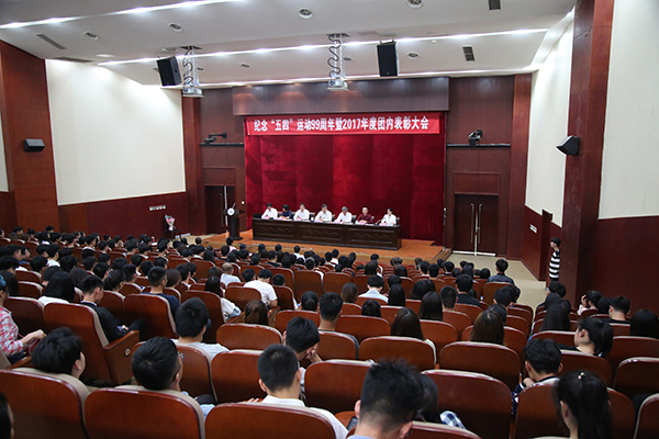 为弘扬“五四运动”伟大的爱国主义精神、传承时代青年勇于担当的优秀品格,学校于5月4日下午在国际交流中心一楼报告厅召开了纪念五四运动99周年暨2017年度团内表彰大会。校领导朱爱胜、华坚及党委宣传部、党委学工部、马克思主义学院相关负责人,全体受表彰的团员青年、“苏北计划”志愿者特邀代表参加了本次大会。大会由校团委书记赵健主持。