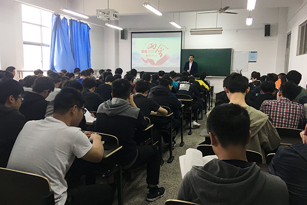 朱书记从我校学习贯彻全国“两会”精神入手,进而介绍了今年全国“两会”的概况,解读了政府工作报告的主要内容,引导学生学习理解宪法修正案。整堂授课既站位高又接地气,从国家的精准扶贫到我校的贫困生帮扶政策,从中美贸易战、中国制造2025到学生的机电、电气专业的学习,从中国的扩大开放到我校的留学生工作等,视野宽广又联系实际,与学生积极互动,循循善诱。讲课中,他勉励同学们既要胸怀理想,又要脚踏实地,养成良好的学习习惯,把握科学的学习方法,投入足够的学习精力,提升综合能力素质,与祖国和时代同行,砥砺奋进,不负使命,把个人的青春梦想融入到实现中国梦的伟大事业中。讲授突出价值引领,既有理论高度又有实践深度,让家国情怀和担当意识扎根学生心灵。