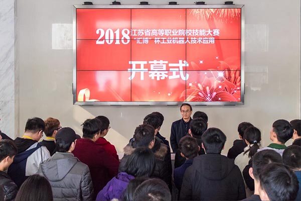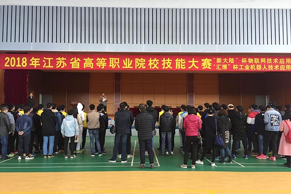 3月22日下午,“2018年江苏省高等职业院校技能大赛物联网技术应用、工业机器人技术应用赛项”开幕式分别在我校体育馆二楼、智能制造工程中心一楼举行,来自省内的50支代表队将于23日参与竞赛。