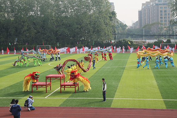 在精彩的广播操比赛、舞龙舞狮表演和跆拳道表演之后,女子100米、男子跳高和教工趣味运动项目随即展开角逐。