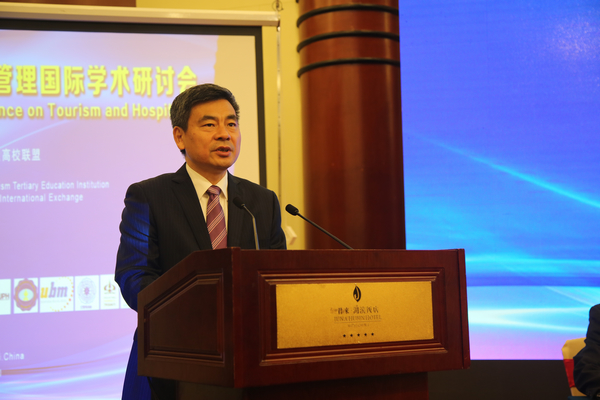 朱爱胜书记在致辞中对与会嘉宾领导的到来表示欢迎,并介绍了我校概况与近年来获取成绩。他指出,此次会议聚焦当前旅游与酒店管理发展的重点领域、前沿区域进行集中探讨和深入交流,将促进旅游与酒店管理高等教育研究,对进一步增强国际高等教育服务经济社会发展能力具有十分重要的意义。