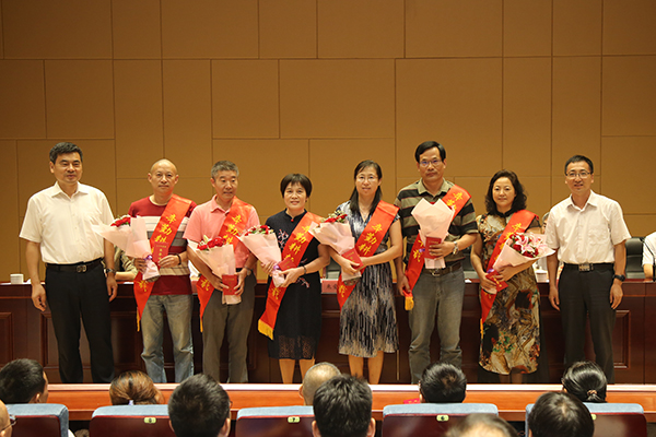 9月7日下午,学校在综合楼一楼报告厅召开大会,隆重庆祝第33个教师节的到来,并对一年来学校涌现出的优秀教师、优秀教育工作者和先进集体进行了表彰。校领导朱爱胜、龚方红、谈向群、华坚、顾京、周桂瑾,受表彰人员、教职工代表和学生代表150多人参加了活动。