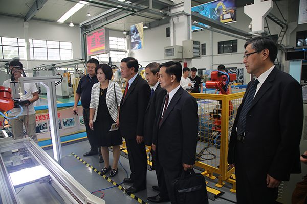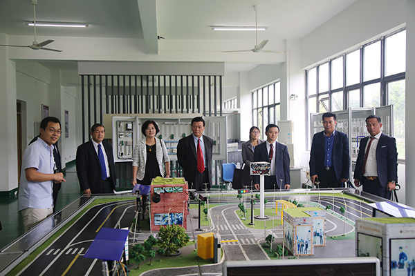 访问团一行还在冯渊副校长的陪同下,参观了智能制造工程中心、物联网技术学院、国际教育学院、留学生宿舍及教室。老挝教育部孔熙·森马尼副部长率访问团一行走进中澳合作项目班的课堂,与外方教师及专业学生进行交流,对我校的中外合作办学成果给予高度肯定。