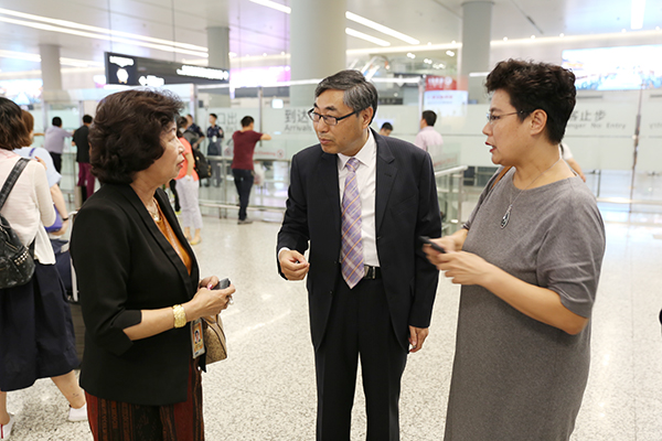 9月7日晚冯渊副校长、老挝驻上海总领事馆总领事西莎美·銮珍达翁赴机场迎接了老挝教育部访问团一行。