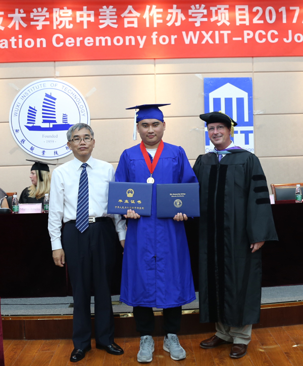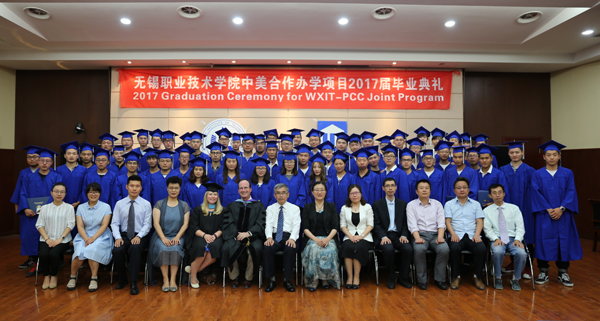 美国皮特社区学院丹·梅奥博士和马丁·艾美利亚女士,学校华坚副校长、顾京副校长,国际教育学院、机械技术学院负责人及教师代表共同见证了毕业生迈向人生新征程的庄严时刻。