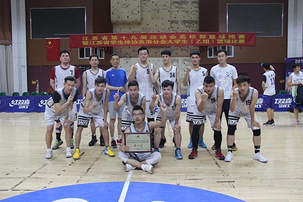 5月27日至6月2日,为期7天的江苏省第十九届运动会高校部篮球预赛(苏南)暨江苏省学生体协苏南分会大学生男子篮球比赛(乙组)在常州举行,我校男子篮球队在领队华宝元,教练员时国兴、刘超的带领下连战连捷,以全胜的战绩勇夺桂冠,并获得下半年省运会决赛资格。