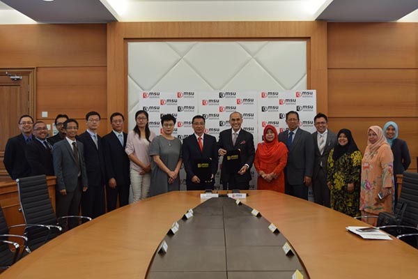 在马来西亚期间,代表团重点访问了马来西亚管理与科技大学(MSU)。该校校长Mohd Shukri AB Yajid拿督接待了访问团一行,并介绍了MSU的整体情况、办学成果,特别是学生就业方面取得的成效。随后,双方就合作办学项目,我校教师学历提升、学生之间的短期交流等项目进行了商讨,并达成合作意向,签署了合作备忘录。