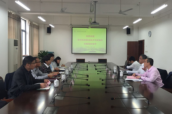 10月12日下午,常州信息职业技术学院费小平副院长一行5人来我校考察交流,华坚副校长及学生处、团委相关负责人在国际交流中心205会议室接待了来访宾客。