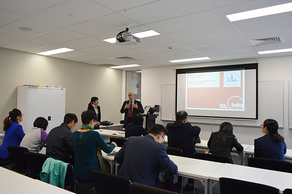 培训期间, 澳方讲师分别从澳大利亚的职业教育与培训体系、专科与本科教育的衔接、老师如何提升教师教学质量、学生创业、培训包和教学方法、课程设置等主题进行了详细深入的讲解。学习团成员还参观了TAFE的各类专业的实训环境,并顺利结业。我校教师认真学习的态度和深入探究的精神也受到澳方的高度评价。