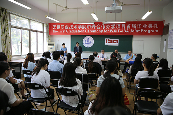 7月8日上午,我校中丹合作办学项目首届毕业典礼在J2-108举行,丹麦IBA学院的教学主管Mikael先生和Svend先生,我校领导华坚、冯渊及国际教育学院、管理学院负责人共同见证了营销41381、营销41382班毕业典礼的庄严时刻。
