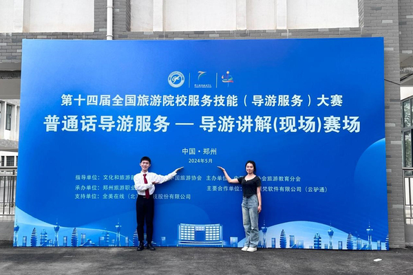 5月23日至26日,第十四届全国旅游院校服务(导游服务)技能大赛在郑州举行,来自全国30个省、自治区、直辖市的303所院校883名选手参加比赛。我校文旅学院旅游管理专业的韩乾胜、雷雨阳、王淑睿、刘思彤4名选手分别参加了普通话导游服务和英语导游服务两个项目的比赛,在与本科院校同组比赛中沉稳应对,取得了二等奖1项、三等奖3项。