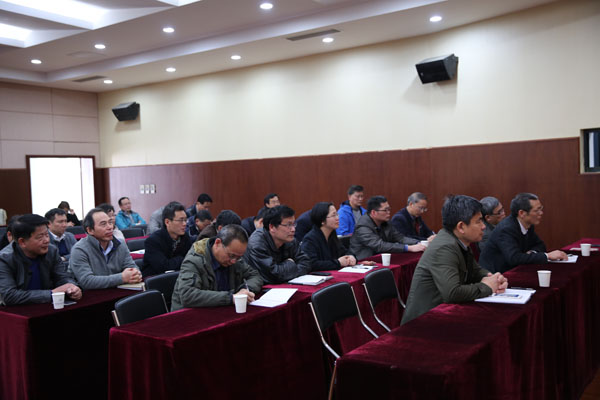 我校领导干部认真收看视频会议