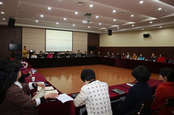 3月7日下午,学校在国际交流中心二楼报告厅召开庆祝“三八”国际劳动妇女节座谈会,校领导朱爱胜、龚方红、谈向群与校工会负责人、各分工会主席、2015年度优秀女教工代表等齐聚一堂,共同庆祝这个属于女性的节日。