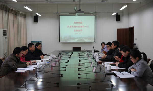 3月8日下午,民建无锡市委副主委许建樟等一行4人到我校调研、考察。我校党委书记朱爱胜及统战部负责人、学校民建会员代表参加了座谈交流。