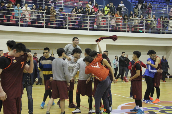 本次比赛由中国大学生体育协会、江苏省学生体协高校工作委员会主办,共有来自全省四个片区(苏南分会、苏北分会、苏中分会、南京分会)的13支代表队参加。我校男子篮球队经过八场高强度的艰苦鏖战挺进决赛。决赛中,健儿们通过积极拼抢和顽强防守,苦战一个加时赛,力克去年的冠军队伍——正德职业技术学院队,创造我校男篮历史最好成绩,拿到江苏省唯一一张直通CUBA全国决赛的入场券。