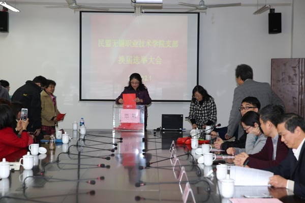 会议由盟市委组织处王焜宏同志主持。顾惠明同志做了民盟无锡职院支部2015年换届工作总结,全面回顾了五年来民盟支部在强化政治理论学习、加强组织建设以及立足本职工作积极参政议政等方面取得的成绩,指出了支部工作中存在的不足,对下届支部提出了建议。