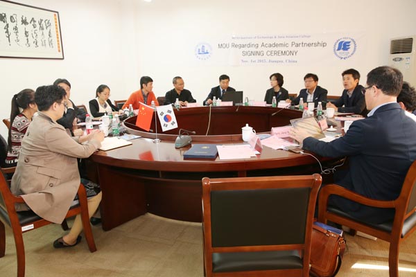 11月2日上午,韩国ASEA航空技术学院校长Young-Suk一行7人访问我校,冯渊副校长、控制技术学院黄麟院长及国际教育学院相关人员参加会议。
