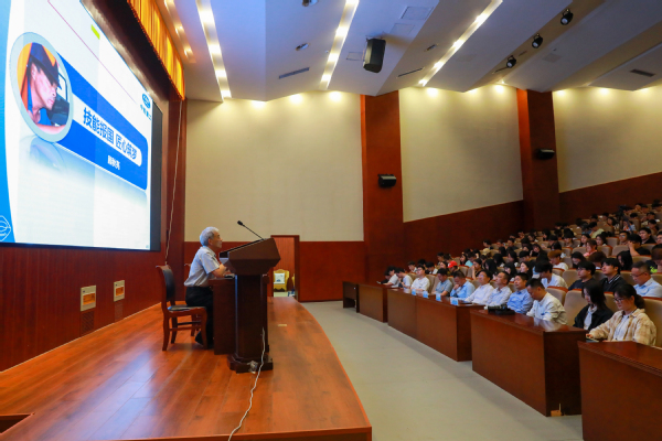报告会上,顾秋亮向学校师生、职教社社员分享了自己的职业故事,介绍参与“蛟龙号”项目的动人场景,细述攻坚破难、追梦路上的难忘经历,从“耐心、精心、尽心”及“为谁学,怎么学,学了怎么用”等方面向大家阐释了对工匠精神的不懈追求。联系自己的成长经历,顾秋亮鼓励学子们要认真学好专业知识,做到学有所专,学有所长,展现未来新一代工匠人的新风采。