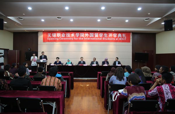 开学典礼由副校长冯渊主持。龚方红校长在致辞中对新同学的到来表示欢迎,并介绍了我校办学情况,勉励大家尽快适应在无锡的生活,学好汉语、学好专业,积极参加学校各项活动,把各自国家的文化介绍给中国的老师和学生。