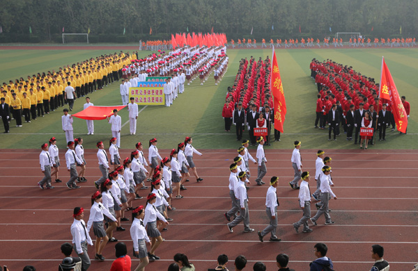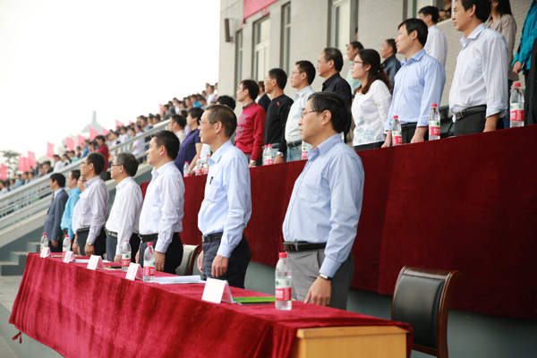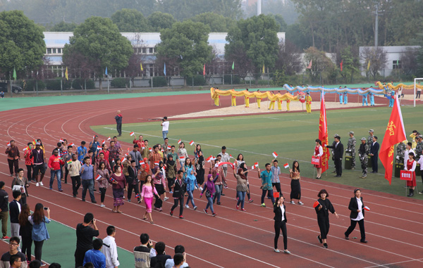 10月22日上午,我校2015年运动会在太湖校区体育场隆重开幕。校领导朱爱胜、谈向群、华坚、冯渊、周桂瑾出席,数千名师生员工参加,3000多名师生运动员将在两天的时间内参加近50个田径项目和趣味运动项目的角逐。