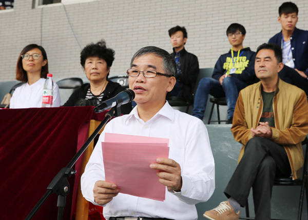 华坚副校长表示,这次运动会将是对同学们心理素质、体育素质、体育运动水平的一次测试和验收,也是对全体同学组织纪律和精神风貌的大检阅。希望全体参赛人员以饱满的热情、昂扬的斗志、勇于拼搏的精神投身各项竞赛活动,赛出风格,赛出水平。