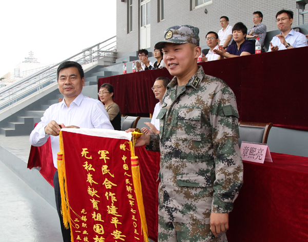 活动由学生处处长强伟纲主持。庄严的升国旗仪式后,全体新生进行了分列式、队列动作和军体拳表演,展示了十多天的训练成果。随后,谈向群副书记宣读了表彰决定,材料11531班周博等161名同学在军训中表现出色,获评优秀学员称号;朱爱胜书记、龚方红校长代表学校向承训部队赠送了锦旗。华坚副校长在讲话中对军训工作进行了全面总结,并代表学校向承训部队全体教官表示衷心的感谢和崇高的敬意,向圆满完成军训任务的全体新同学表示慰问和祝贺,他还要求同学们将军训的收获和成果巩固下来,贯穿到今后的学习和生活中,努力把自己培养成为全面发展的高素质人才。
