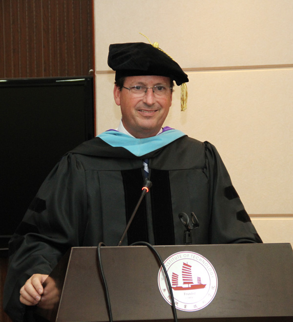 6月26日上午,中美合作机械制造与自动化专业2015届学生毕业典礼在国际交流中心二楼报告厅举行,这是我校第四届中美合作办学项目毕业生,毕业班35名学生中有27人获得合作院校皮特社区学院副学士学位。