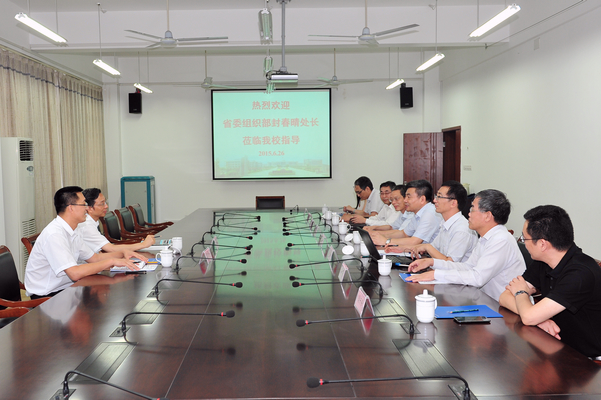 6月26日下午,省委组织部干部五处封春晴处长、李炳龙主任科员一行来校调研指导工作。校领导朱爱胜、龚方红、谈向群、华坚、冯渊、周桂瑾,党委办公室、党委组织部负责人参加了调研座谈会。