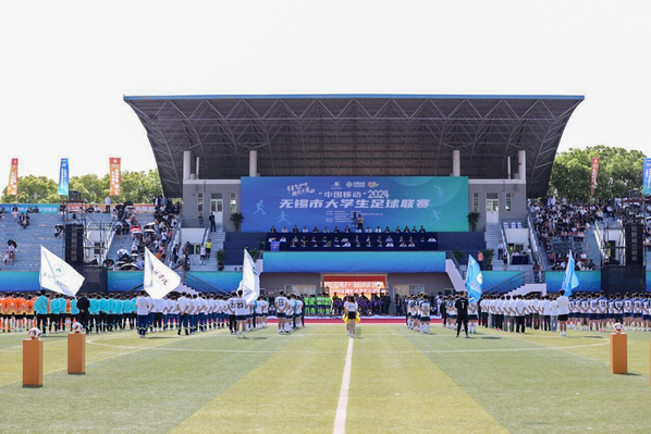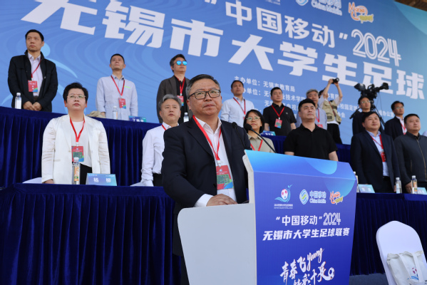 4月24日下午,“中国移动”2024年无锡市大学生足球联赛在我校开幕。市人民政府副市长秦咏薪,市人民政府副秘书长顾文龙,市教育局局长宋新春,市体育局党组书记、副局长杨宇华、我校校长周桂瑾等出席开幕式。各市(县)区、无锡经开区分管领导;市委宣传部、市文广旅游局、共青团无锡市委、市报业集团、市广电集团、各市(县)区教育局、在锡高校领导参加开幕式。