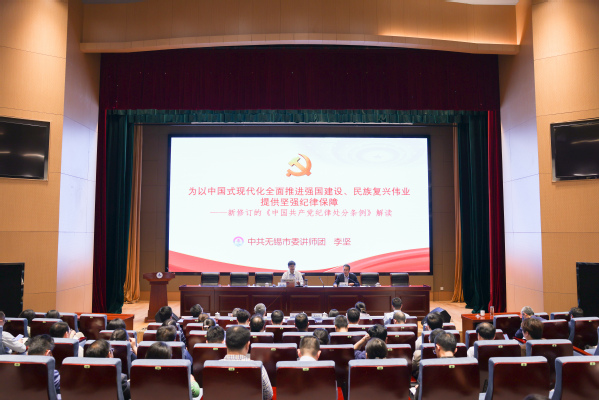 李坚以《为以中国式现代化全面推进强国建设、民族复兴伟业提供坚强纪律保障——新修订的< 中国共产党纪律处分条例>解读》为题,从党的纪律建设的理论基因和政治根脉、党纪处分条例的历史沿革、《条例》修订的重要意义和主旨要义、推进党的自我革命等六个方面对《条例》进行了详细解读,帮助我校党员干部更全面、更深入地理解把握了《条例》的内容特点与实践要求。