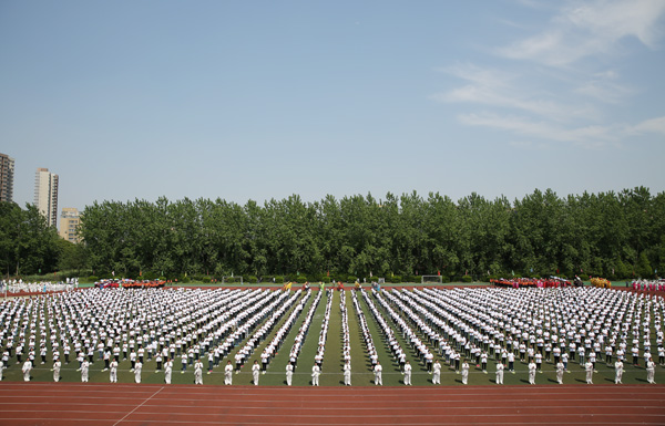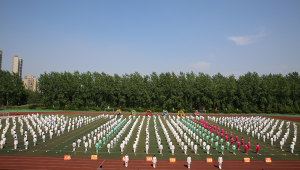 此次大型活动能在我校成功举办,得益于全校师生员工共同努力,特别是体育部全体教师每天早操时间全员参与,督促学生切实学好“六字诀”动作。并提前一周划好场地,研究制定入场方案、退场路线等。