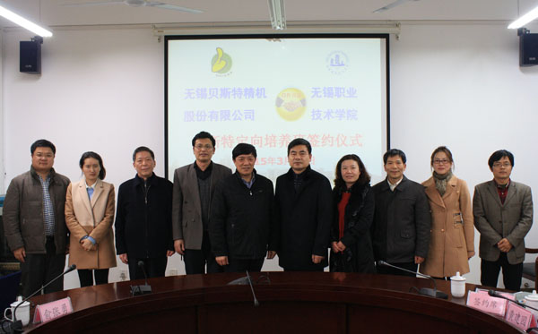 经过去年的高层互访、友好协商和细节沟通,我校与贝斯特公司的首个合作项目“贝斯特定向培养班”已正式启动。签约仪式后,双方领导在发言中均表示,学校和企业要加强沟通协作,并提出今后在精密夹具捐赠、员工培训、技术服务、项目申报等领域进一步深入合作,早日实现互利共赢。(机械学院 撰稿:吴慧媛;摄影:朱耀武)